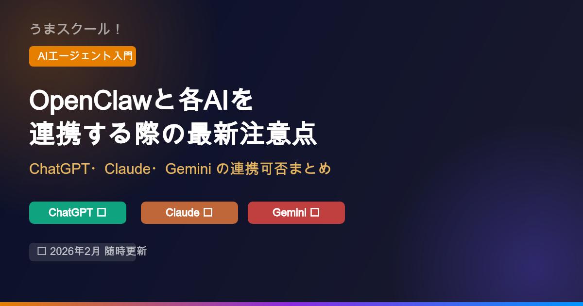 この記事では、OpenClawと各AIを連携する際の最新状況を、随時更新してまとめていきます。