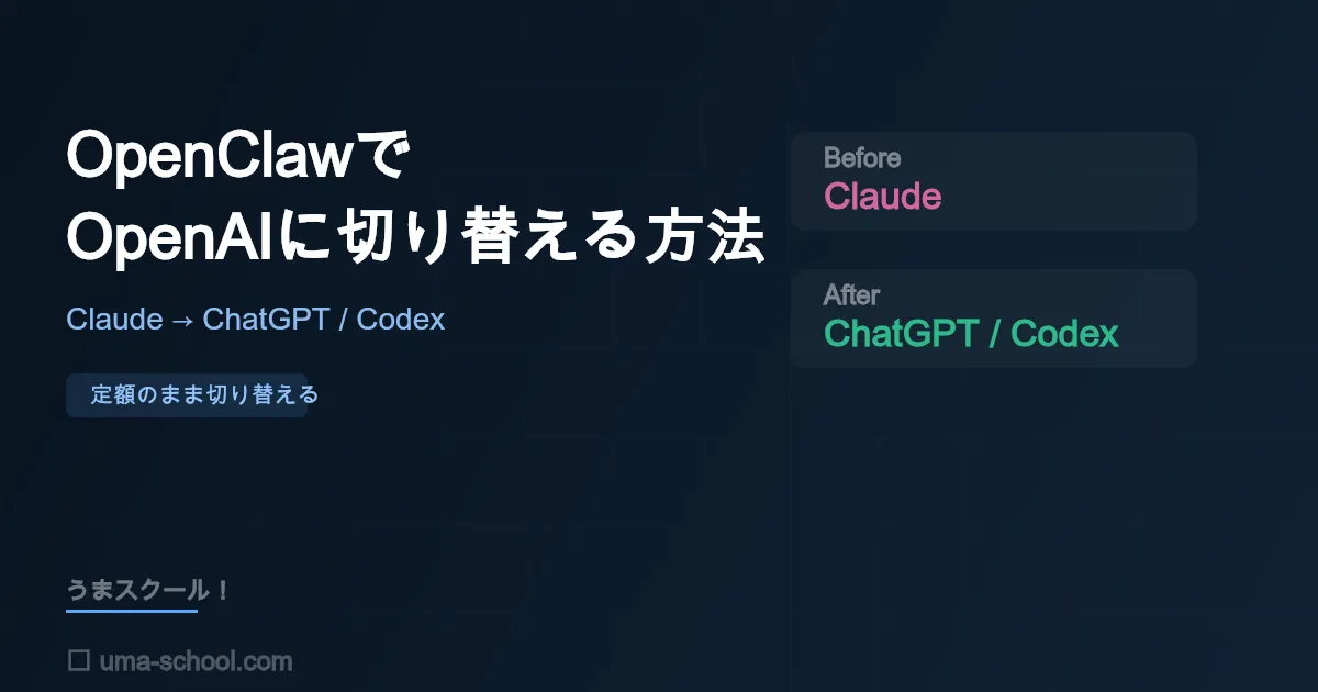 この記事は、いまOpenClawでAnthropic系を使っていて、そこからOpenAI系へ切り替えたい人向けです。
